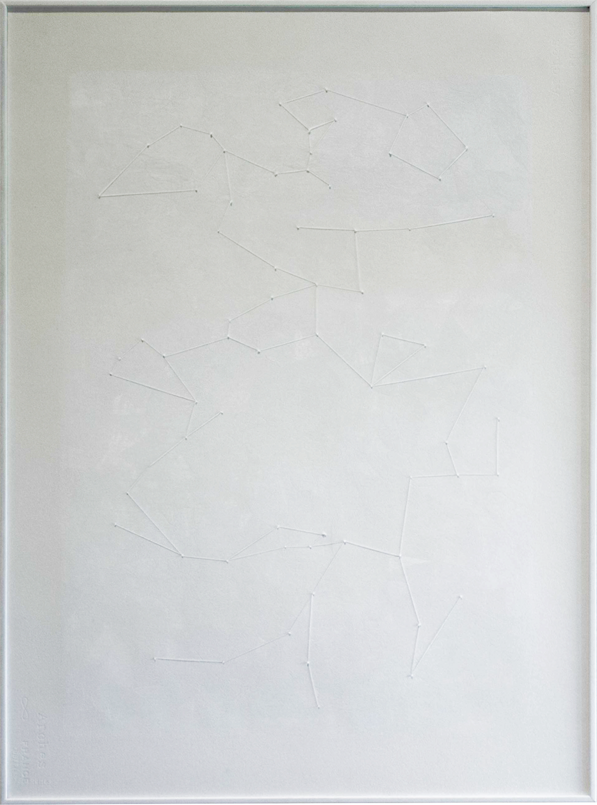 I rapporti umani più significativi degli anni trascorsi in Italia dall’artista ecuatoriano sono rappresentati attraverso dei nodi messi in relazione con dei fili tesi fino a formare delle vere e proprie costellazioni esistenziali. Opera premiata per la delicata vena poetica, in grado di trovare un’affinità tra le antiche geometrie siderali e quelle mondane intrecciate tra gli esseri umani, con materiali e tecniche artigianali desunti dalla propria tradizione familiare.